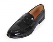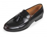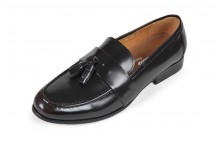 Giày lười nam James Blanc viền hoa da trơn có chuông màu đen (JB-005)